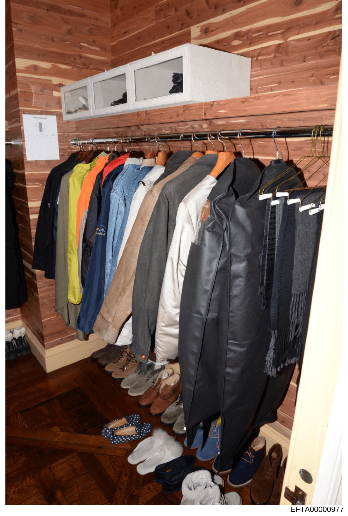 What is "Interior Photo: Wooden Closet with Clothing and Footwear"?