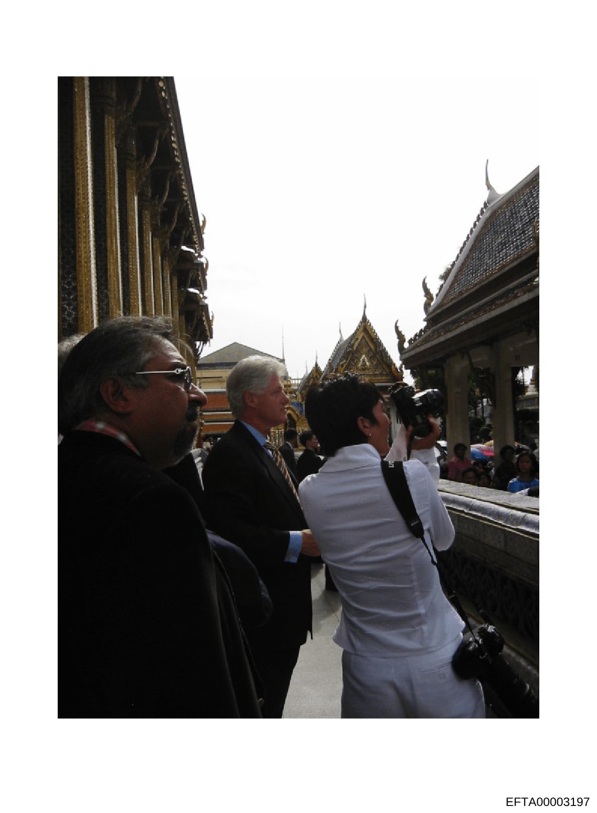 This photograph shows a group of individuals visiting a Thai Buddhist temple, identifiable by the distinctive golden spires and ornate architectural details characteristic of Thai temple design. The image appears to be documentary in nature, capturing what seems to be an official or organized visit to the religious site. The context and specific identities of the visitors are not evident from the image alone.