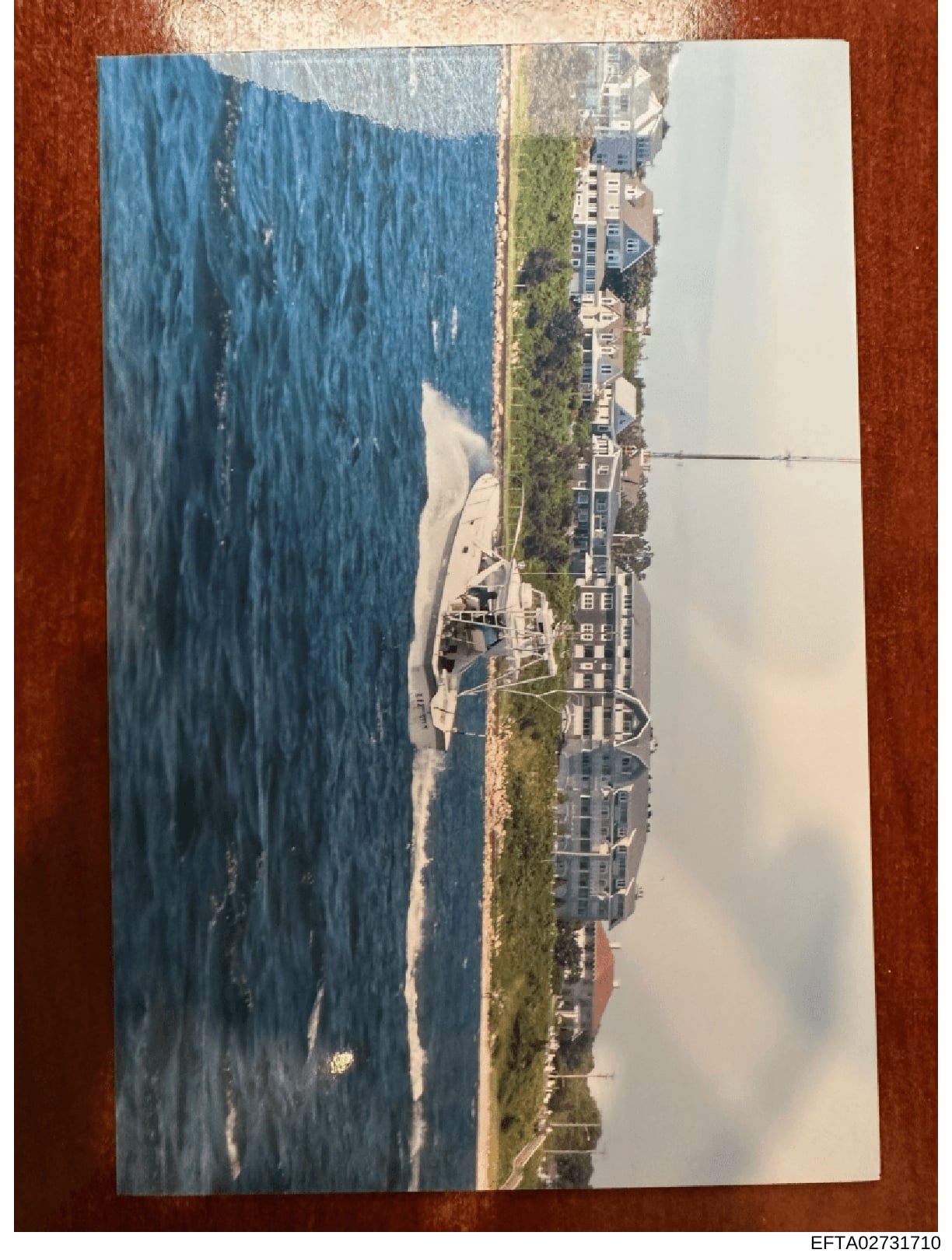 This is an evidence photograph of an ornate wooden double-door entrance, likely from one of Epstein's properties. The photo shows classical archite...